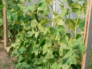 Some vegetables such as tomatoes and cucumbers grow best when trained to grow vertically. It is easier to water around the base of the plant (tomatoes do not like their leaves to be wet), vertical growing allows for more air circulation keeping the plants healthier, and it is easier to harvest the fruit.