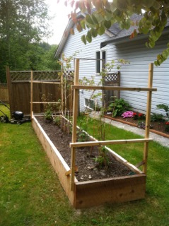 Even if you have lots of gardening space vertical gardening can add structure and interesting design to your garden. Best Vine and sprawling vegetables:Beans - climbing and runner varietiesCucumber Gourds Peas - snow peas are a great variety Squash Sweet Potato Tomatillo Tomato For more information on specific vegetables please go to my vegetable list. My community garden update:I started growing in a community plot in my new neighbourhood in Vancouver, British Columbia Canada. The area is approx. 20 square feel in size.I have had 2 cuttings from my salad greens so far, the peas are starting to need staking, the chard and kale is looking wonderful and leaves are getting bigger.